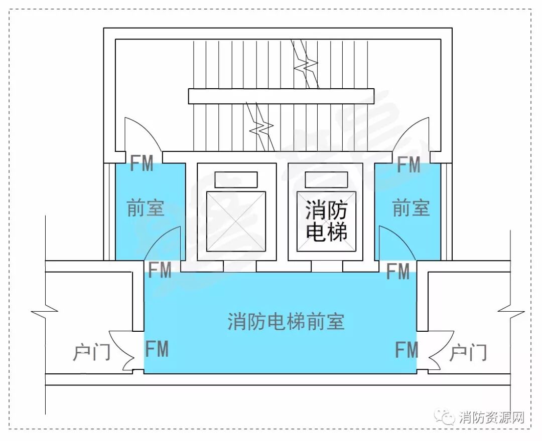注:2018版《建规》已明确“消防电梯前室的短边不应小于 2.4m”(7.3.5),将短边长度要求扩展到所有消防电梯前室,斩断了类似投机方案。