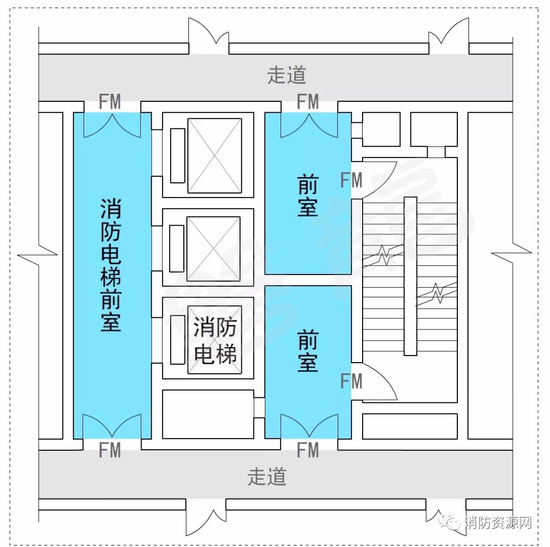 三、需要说明的是:人员可以通过消防电梯前室疏散(比如合用前室的情况),以此为据,穿越独立的消防电梯前室,在住宅建筑中通常被许可,但公共建筑应予禁止: