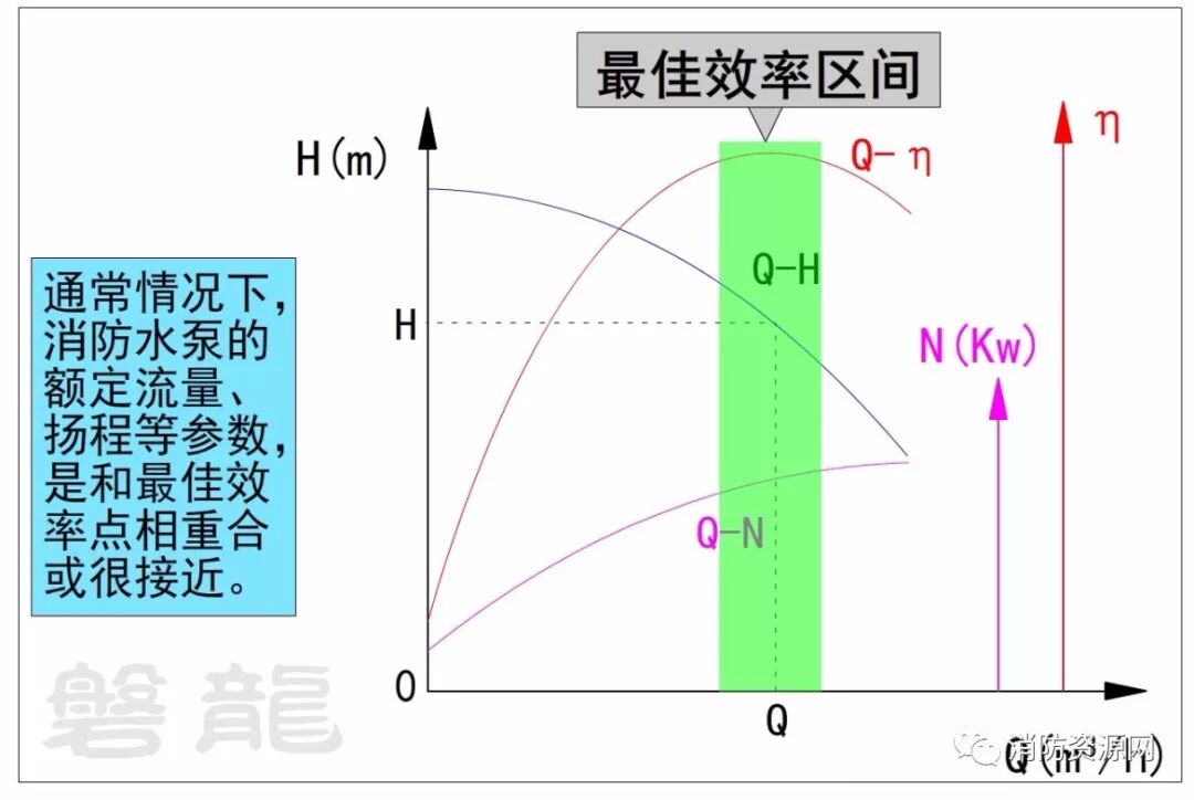 三、通常情况下,消防水泵的额定流量、扬程等参数(即设计流量和设计压力),是和最佳效率点相重合或很接近。