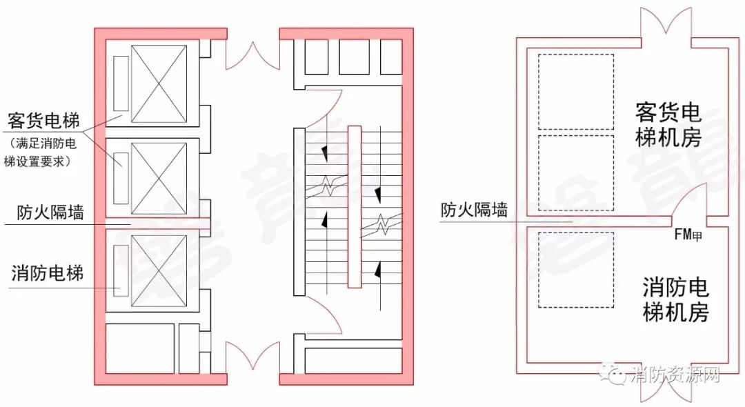 一、规范图示中的“客货电梯应满足消防电梯设置要求”,主要是指客货电梯的相关防火措施,并非将客货电梯全部设置为消防电梯。