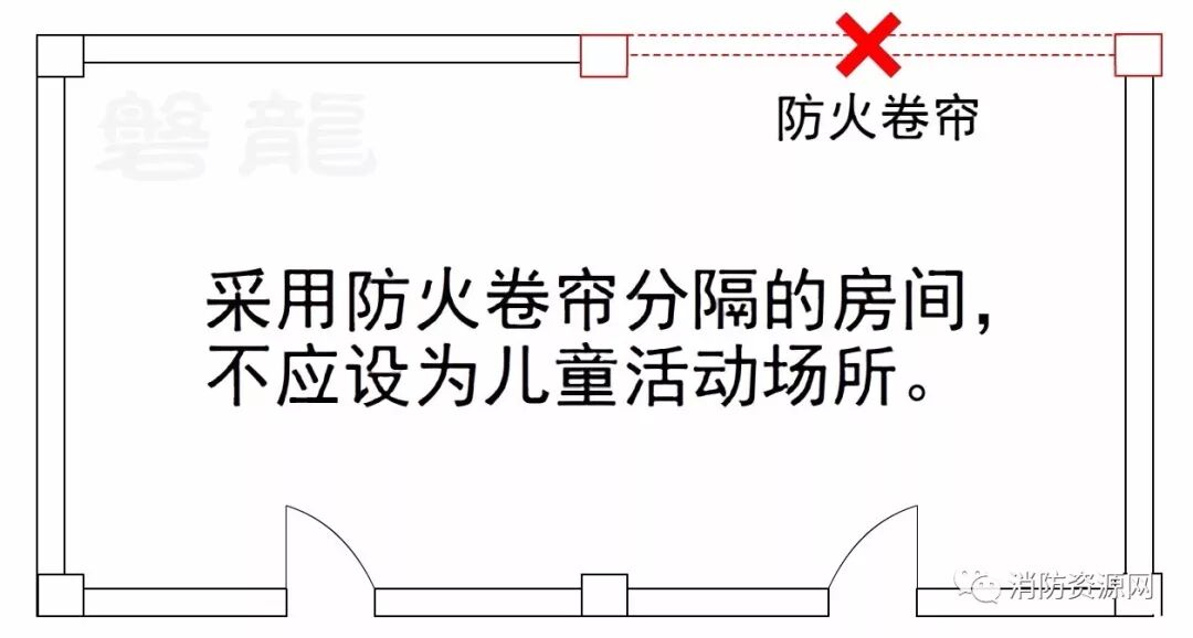 因此,所有儿童活动场所,均不能采用防火卷帘分隔(包括与其他部位的相邻分隔)。