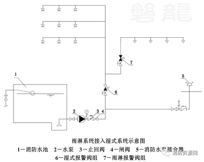 4、雨淋系统可串联接入同一建筑物内的湿式系统,系统造价更低。(4.3.1)